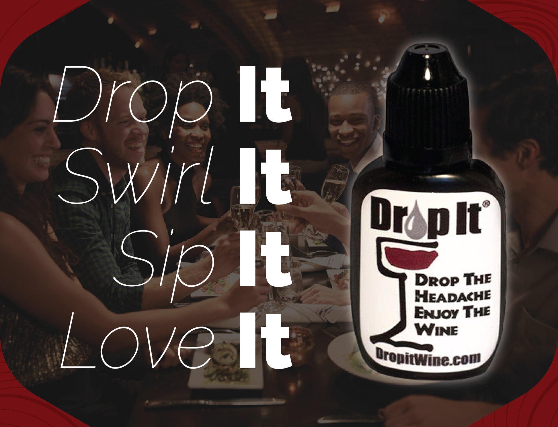 - Drop It Original is added by the drops to either a full glass or bottle of wine.